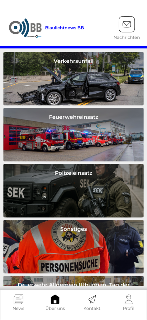 Seit Dezember 2024 gibt es die Blaulichtnews BB App – jetzt kostenlos erhältlich für alle Apple-Geräte und natürlich auch für unsere Android-Freunde.