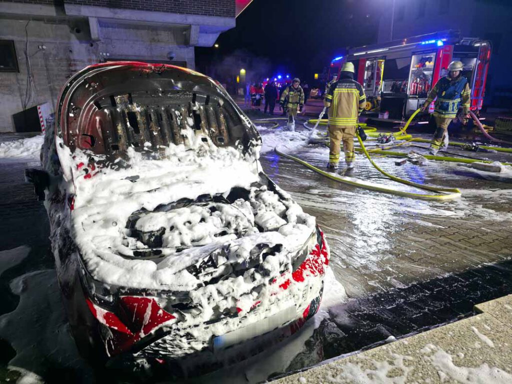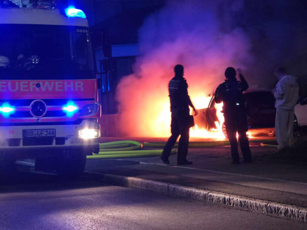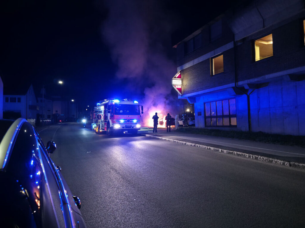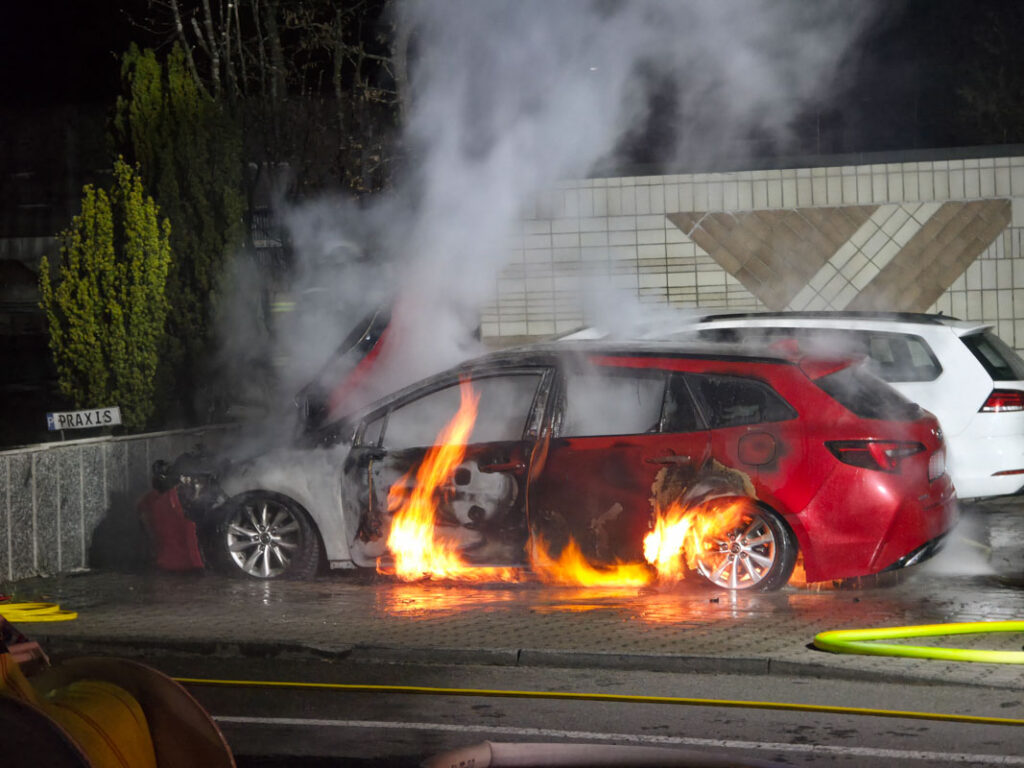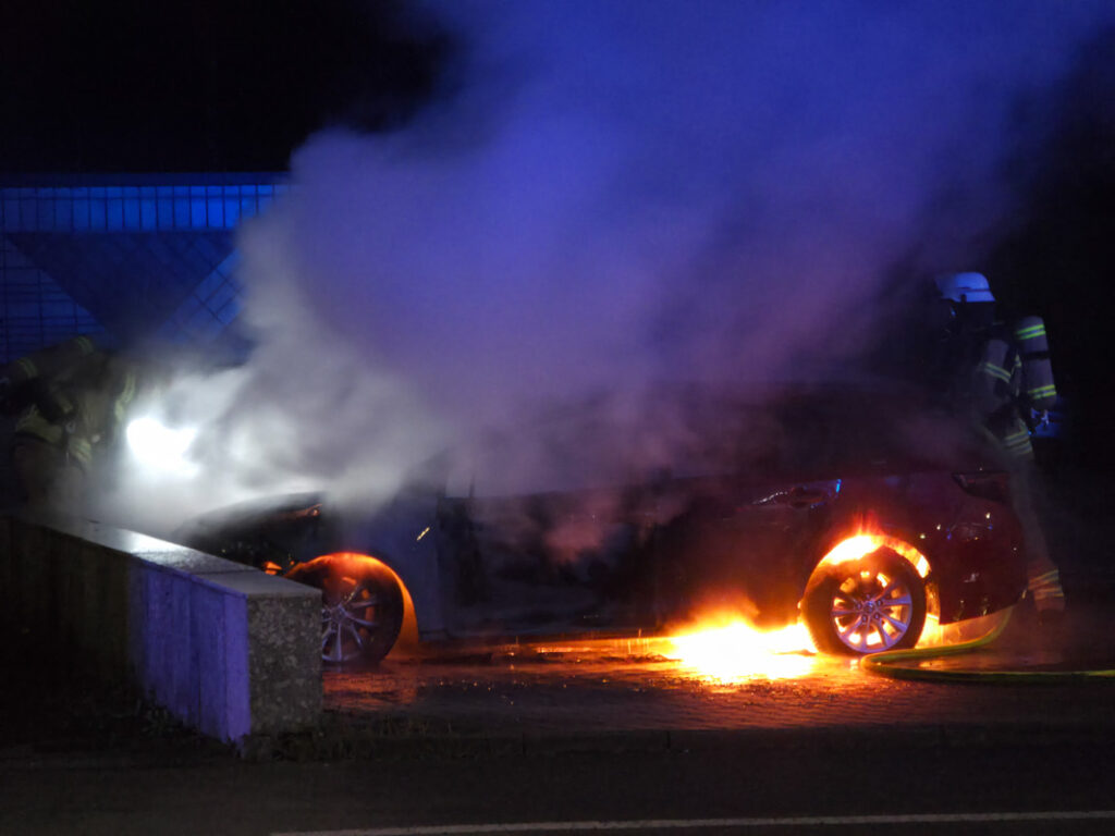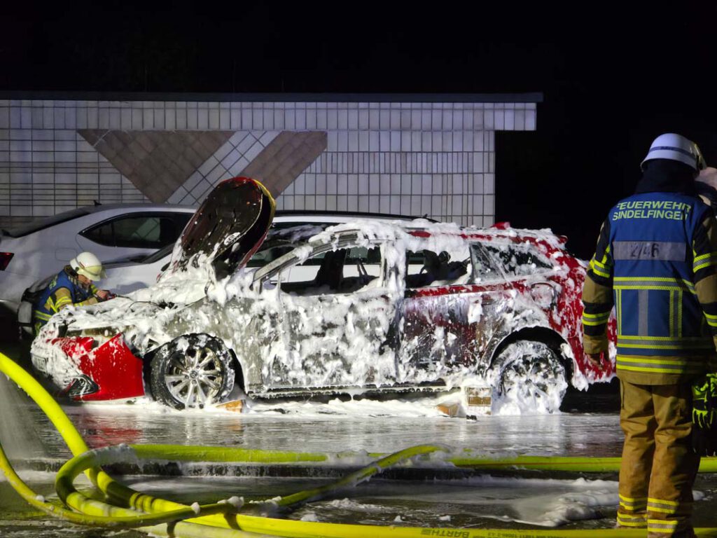 Sindelfingen-Maichingen: Hybrid Fahrzeug brennt lichterloh auf Parkplatz