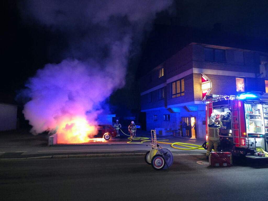 Bereits beim Eintreffen des ersten Löschfahrzeuges brannte der PKW