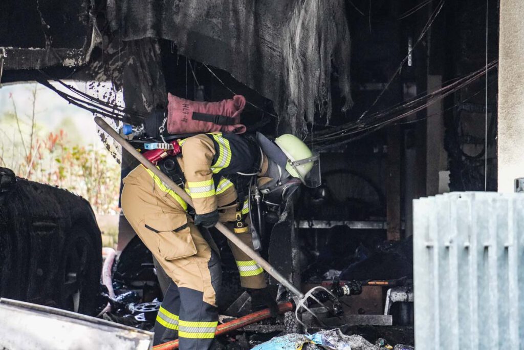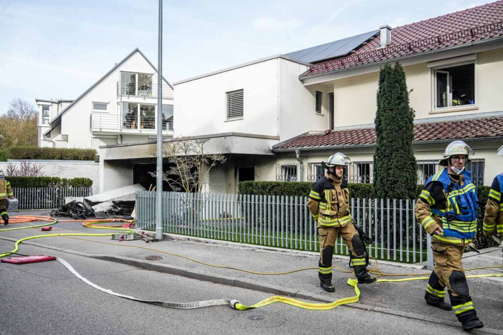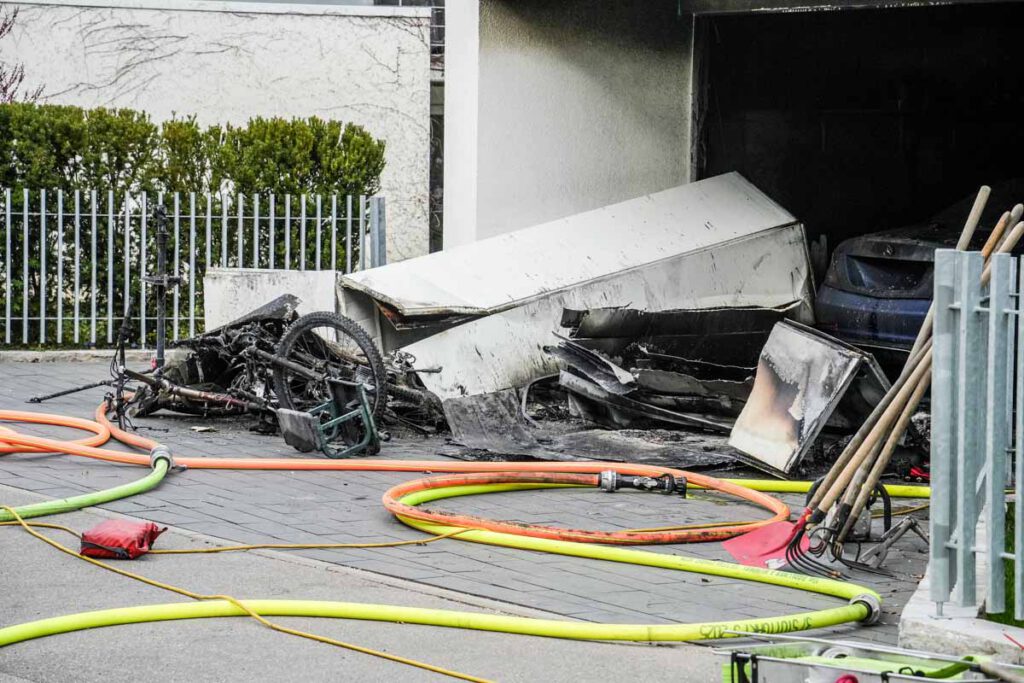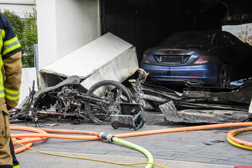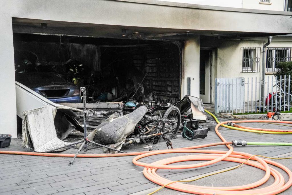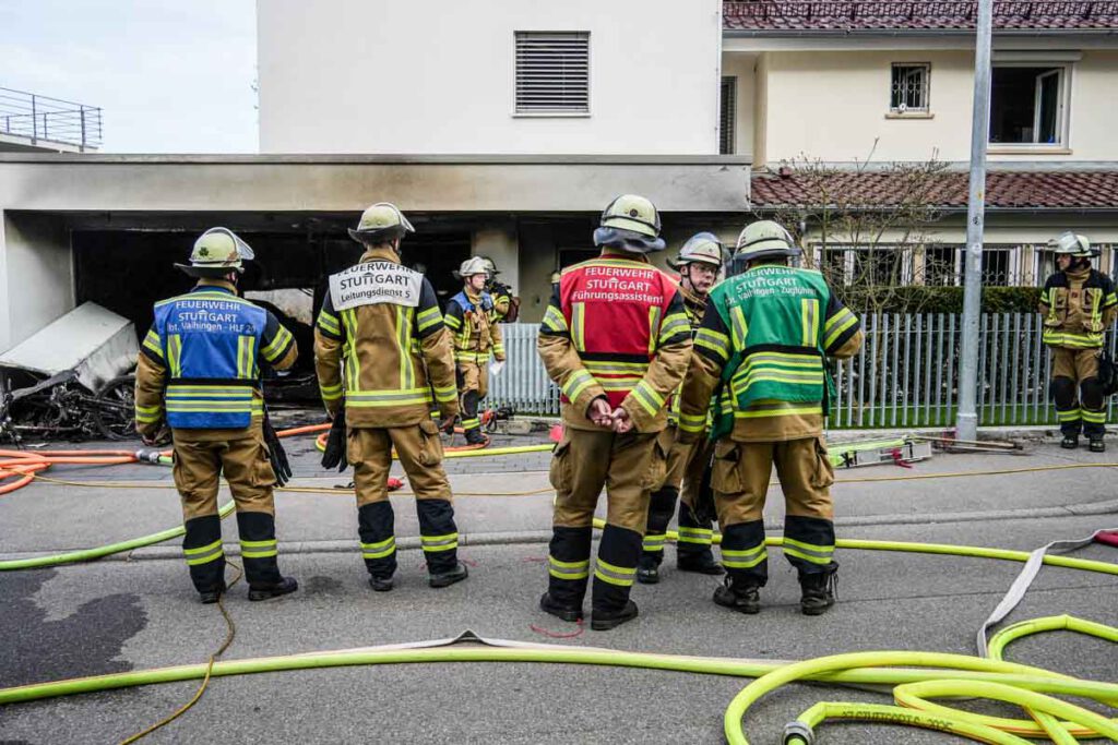 Aus unbekannter Ursache ist am Montagnachmittag (06.04.2026) in der Garage eines Einfamilienhauses im Hessenlauweg ein Feuer ausgebrochen. Zeugen entdeckten die Flammen gegen 16:40 Uhr und verständigten die Rettungskräfte. Zur Zeit des Brandausbruchs hielten sich in dem Gebäude drei Personen auf. Zwei Frauen im Alter von 51 und 89 Jahren konnten das Haus unverletzt verlassen. Ein 58-jähriger Mann erlitt bei Löschversuchen leichte Verletzungen. Die Höhe des entstandenen Sachschadens ist noch nicht bekannt. Durch die starke Rauchentwicklung ist das Gebäude derzeit unbewohnbar.(pol)