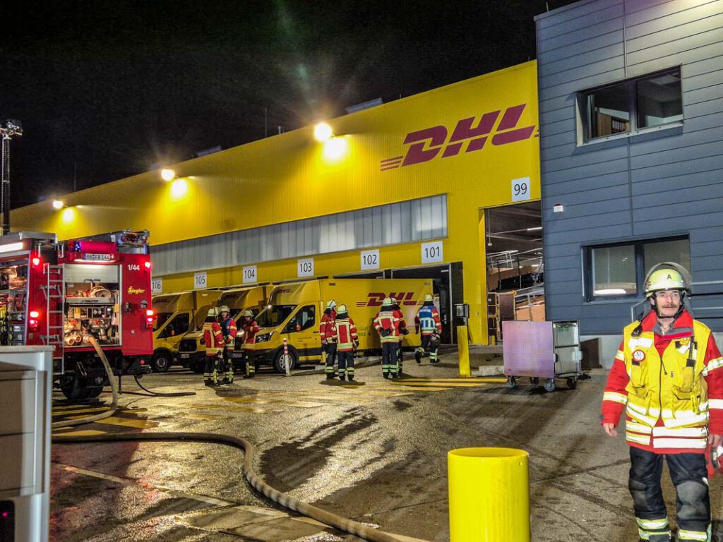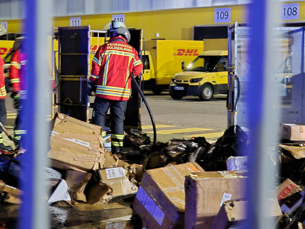 Die Feuerwehr rückte am Sonntag (22.02.2026) gegen 20:45 Uhr in eine Zustellbasis eines Paket-und Brief-Express-Dienstes in der Porschestraße in Weil im Schönbuch aus, nachdem die Brandmeldeanlage der betroffenen Firma ausgelöst hatte. Mutmaßlich dürfte ein Paket aufgrund eines technischen Defekts in Brand geraten sein. Das Feuer griff auf mehrere Rollwagen über, auf denen Paketen lagerten. Die Feuerwehr konnte den Brand löschen, eine Vielzahl an Paketen wurden aber beschädigt oder zerstört.