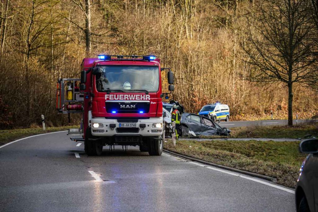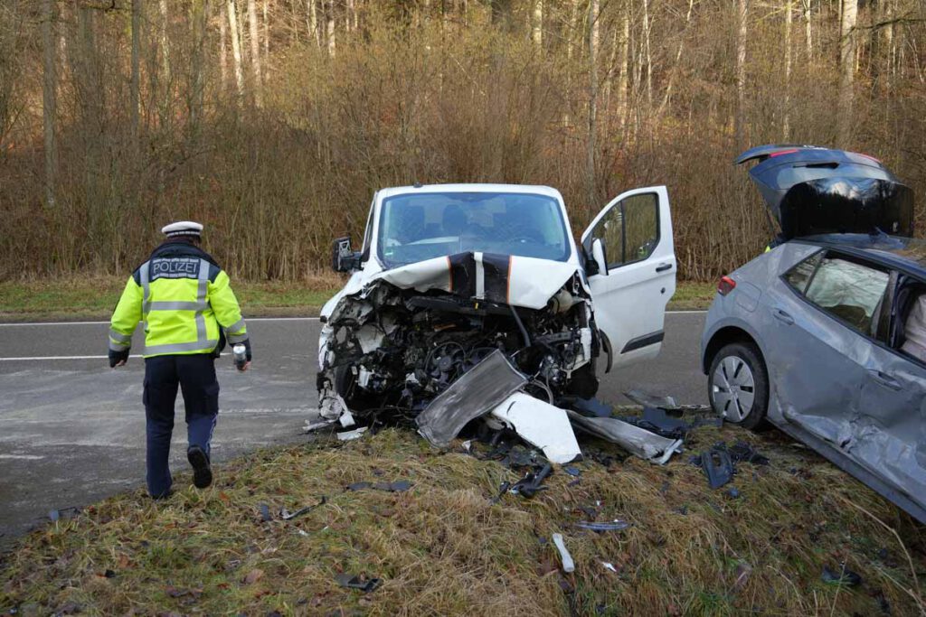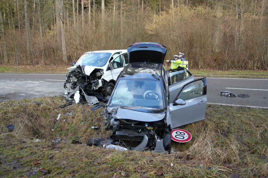 Ein 45-jähriger VW-Fahrer war am Dienstag (17.02.2026) gegen 15:10 Uhr auf der Kreisstraße 1067 / Deufringer Straße aus Richtung Gärtringen kommend in Fahrtrichtung Deufringen unterwegs. Aus noch ungeklärter Ursache kam er mit seinem VW zunächst nach rechts von seiner Fahrspur ab und geriet in den Grünstreifen. Mutmaßlich beim Gegenlenken verlor der 45-Jährige dann die Kontrolle über sein Fahrzeug, welches auf die Gegenfahrspur schleuderte. Dort kollidierte eine entgegenkommende 35-Jährige mit ihrem Ford Transit frontal mit der Beifahrerseite des VW. Der 45-Jährige im VW sowie die 35-jährige Ford-Fahrerin wurden bei dem Unfall verletzt und vom Rettungsdienst in umliegende Krankenhäuser gebracht. Beide Fahrzeuge waren nicht mehr fahrbereit und mussten abgeschleppt werden. Der Sachschaden an den Fahrzeugen beläuft sich auf rund 35.000 Euro. Bei dem Unfall wurden zudem ein Verkehrszeichen sowie ein Leitpfosten beschädigt, der Sachschaden beträgt hier etwa 300 Euro. Aufgrund austretender Betriebsflüssigkeiten musste die Fahrbahn im Bereich der Unfallstelle nass gereinigt werden. Für die Unfallaufnahme musste die K1067 bis gegen 18:40 Uhr in beide Fahrtrichtungen voll gesperrt werden.(pol)
