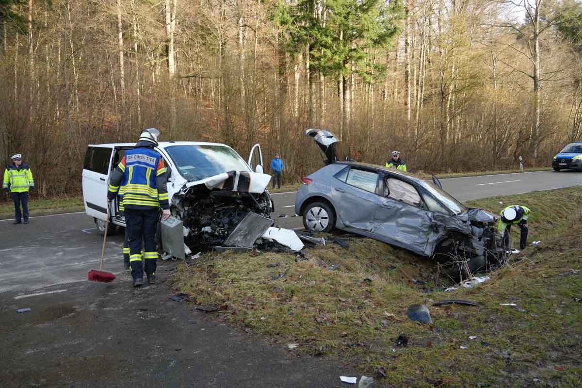Ein 45-jähriger VW-Fahrer war am Dienstag (17.02.2026) gegen 15:10 Uhr auf der Kreisstraße 1067 / Deufringer Straße aus Richtung Gärtringen kommend in Fahrtrichtung Deufringen unterwegs. Aus noch ungeklärter Ursache kam er mit seinem VW zunächst nach rechts von seiner Fahrspur ab und geriet in den Grünstreifen. Mutmaßlich beim Gegenlenken verlor der 45-Jährige dann die Kontrolle über sein Fahrzeug, welches auf die Gegenfahrspur schleuderte. Dort kollidierte eine entgegenkommende 35-Jährige mit ihrem Ford Transit frontal mit der Beifahrerseite des VW. Der 45-Jährige im VW sowie die 35-jährige Ford-Fahrerin wurden bei dem Unfall verletzt und vom Rettungsdienst in umliegende Krankenhäuser gebracht. Beide Fahrzeuge waren nicht mehr fahrbereit und mussten abgeschleppt werden. Der Sachschaden an den Fahrzeugen beläuft sich auf rund 35.000 Euro. Bei dem Unfall wurden zudem ein Verkehrszeichen sowie ein Leitpfosten beschädigt, der Sachschaden beträgt hier etwa 300 Euro. Aufgrund austretender Betriebsflüssigkeiten musste die Fahrbahn im Bereich der Unfallstelle nass gereinigt werden. Für die Unfallaufnahme musste die K1067 bis gegen 18:40 Uhr in beide Fahrtrichtungen voll gesperrt werden.(pol)