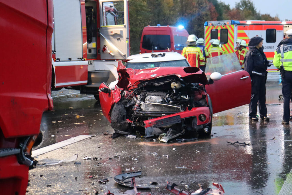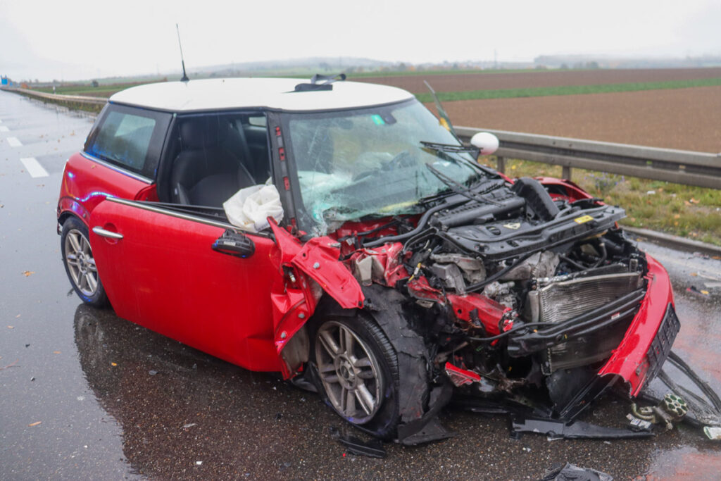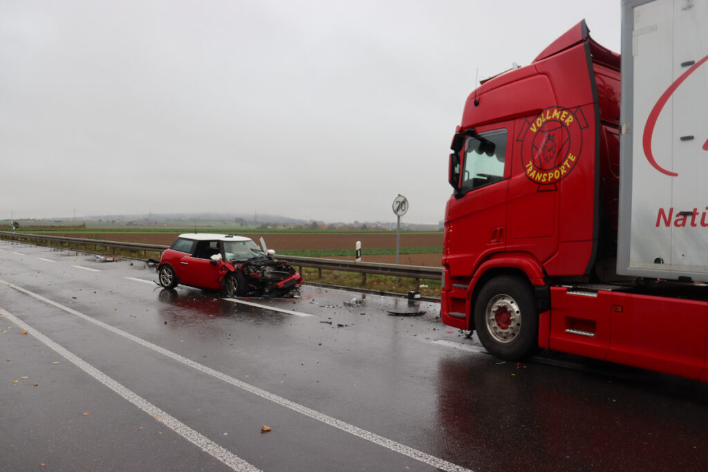 Der 66-Jährige fuhr den bisherigen Erkenntnissen zufolge zunächst auf dem rechten der beiden Fahrtstreifen in Richtung Nagold. Anschließend wechselte er auf den linken Fahrtstreifen und geriet aus noch ungeklärter Ursache auf Höhe des Industriegebiets “Am Römerfeld” auf die einspurig ausgebaute Gegenfahrbahn. Dort kollidierte der Mini-Lenker mit einem entgegenkommenden Sattelzug eines 57-Jährigen. Der Lkw-Fahrer versuchte noch, nach rechts auszuweichen, konnte eine Kollision aber nicht mehr verhindern.