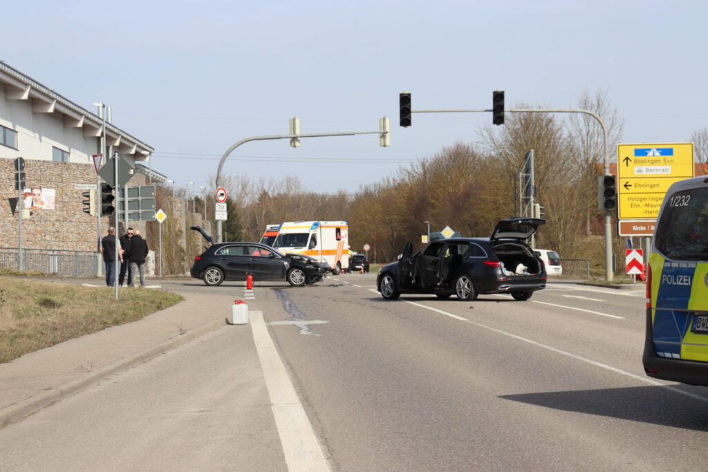 Am Sonntag gegen 12:50 Uhr wurden die Einsatzkräfte zu einem Verkehrsunfall im Kreuzungsbereich der K1077 und der Maurener Straße bei Ehningen alarmiert. Neben dem Rettungsdienst rückte auch die Feuerwehr aus.