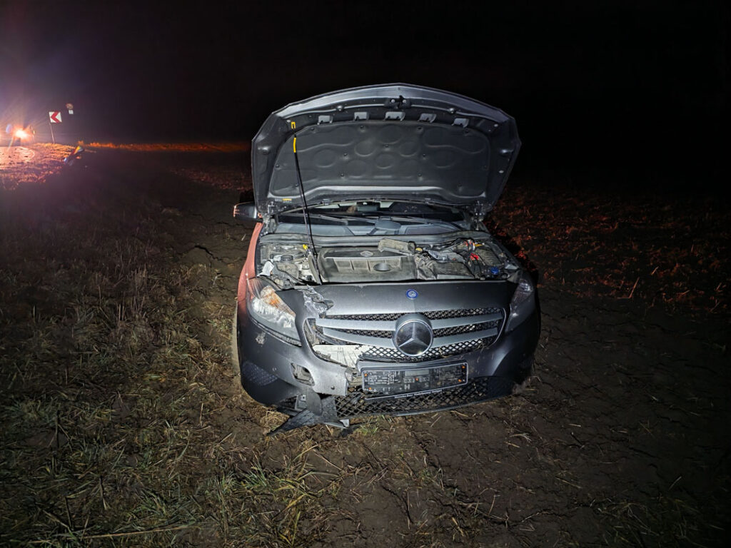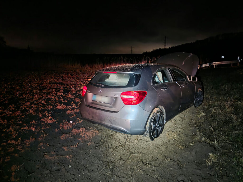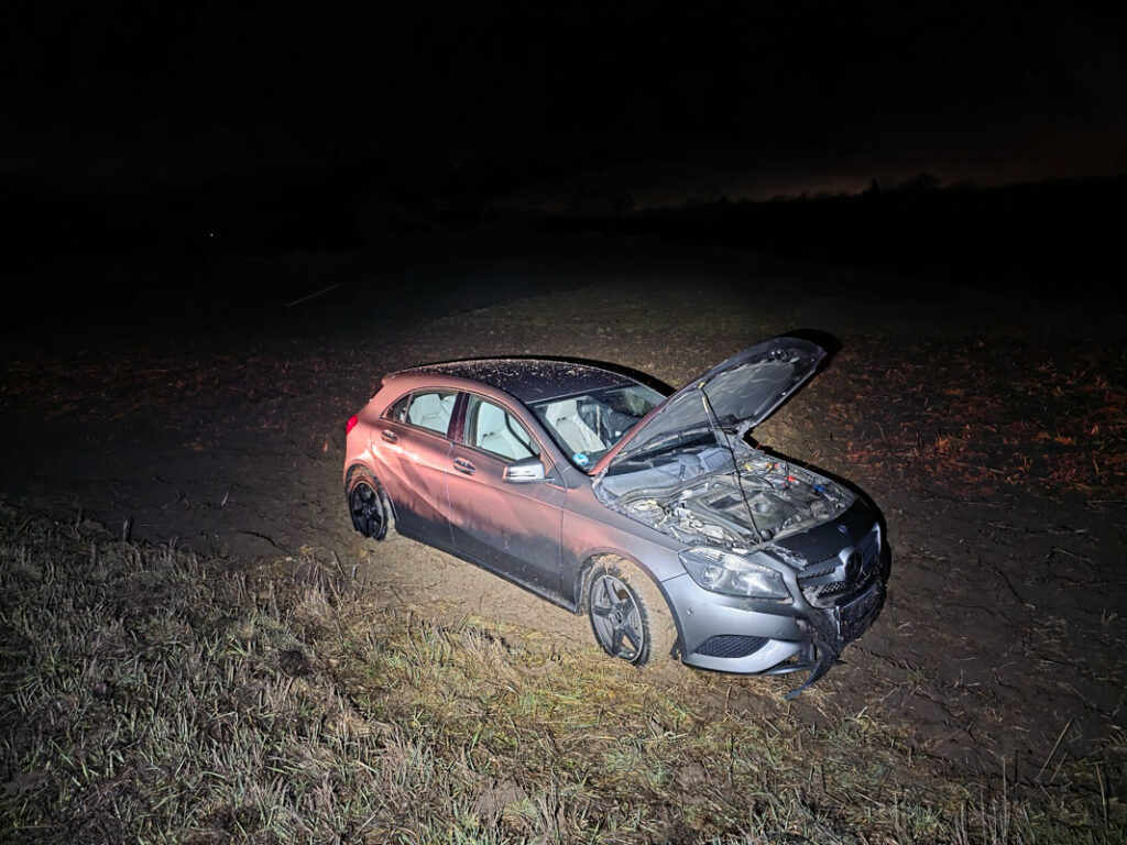 Die Fahrerin zog sich dabei leichte Verletzungen zu. Das beschädigte Fahrzeug musste mit Hilfe eines Abschleppwagens aus der Wiese gezogen und anschließend abtransportiert werden.