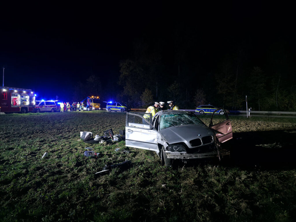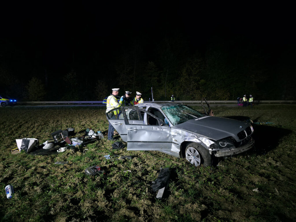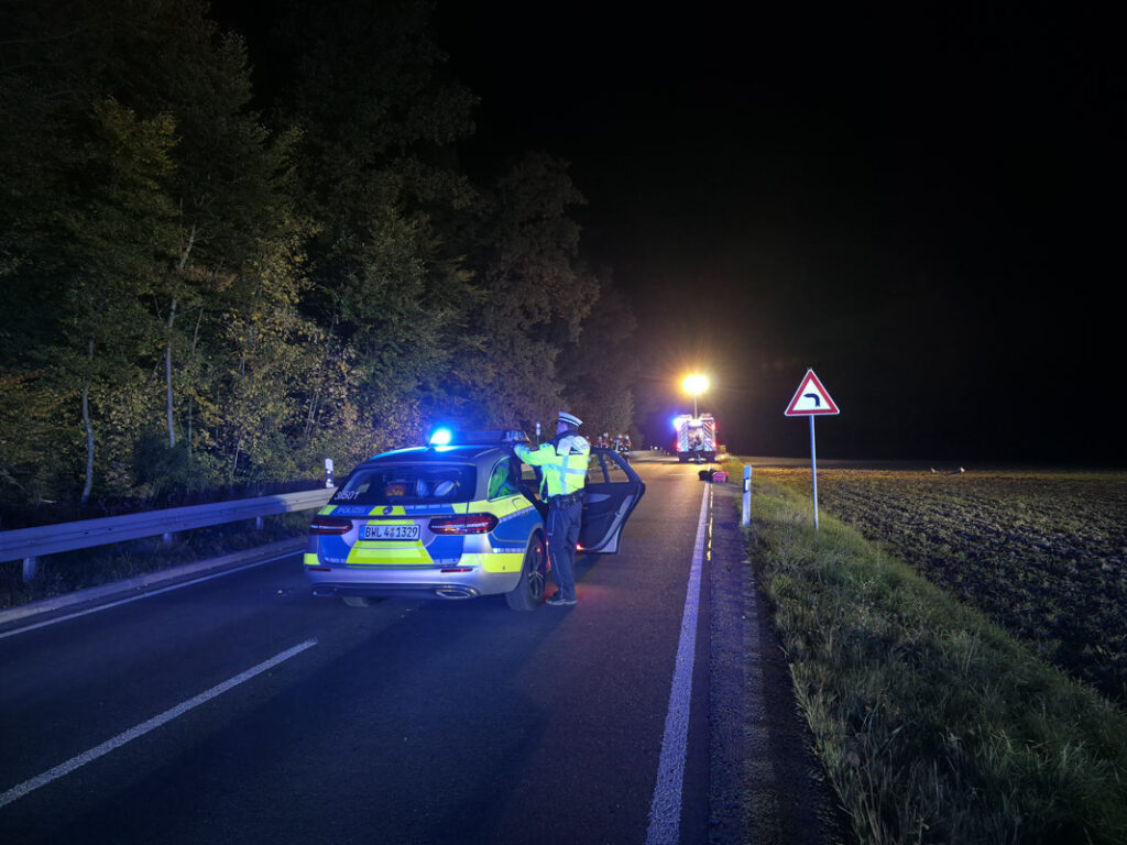 Am Freitag, den 17.10.2025 um 18:48 Uhr, befuhr der bislang noch unbekannte Fahrer eines grauen BMW die L1358 von Sulz am Eck in Richtung Herrenberg-Kuppingen. Aus bislang ungeklärter Ursache kam er dabei nach einer Rechtskurve nach links von der Fahrbahn ab, überschlug sich mehrfach und kam schließlich auf einem Feld zu stehen. Der bislang unbekannte männliche Fahrer des BMW stieg anschließend aus dem Pkw aus und entfernte sich unerlaubt von der Unfallstelle, offenbar mit erkennbaren Verletzungen. Die 31-jährige Beifahrerin des BMW konnte ebenfalls eigenständig aussteigen und wurde leicht verletzt. Sie wurde vor Ort vom hinzugerufenen Rettungsdienst versorgt. Der BMW erlitt einen Totalschaden in Höhe von etwa 5.000 EUR. Die Strecke zwischen Sulz am Eck und Herrenberg-Kuppingen war zwischenzeitlich voll gesperrt. Zur Suche nach dem Fahrer waren unter anderem die Feuerwehr und der Rettungsdienst sowie ein Polizeihubschrauber im Einsatz. Die Verkehrspolizeiinspektion Ludwigsburg hat die Ermittlungen aufgenommen und bittet Zeugen, die sachdienliche Angaben machen können, sich unter der Telefonnummer 0711 6869 0 oder per E-Mail unter stuttgart-vaihingen.vpi@polizei.bwl.de zu melden. (pol)