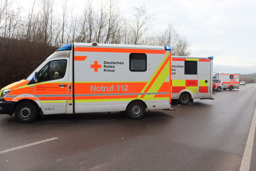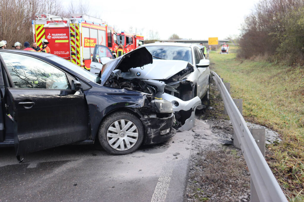 Aus noch unbekannter Ursache kam es am Mittwoch (10.12.2025) gegen 13.00 Uhr zu einem Unfall auf der Bundesstraße 296 bei Herrenberg-Kayh. Ein 72 Jahre alter BMW-Fahrer, der aus Richtung Entringen (Landkreis Tübingen) in Richtung Herrenberg unterwegs war, geriet auf die Gegenspur. Zwei entgegenkommende Verkehrsteilnehmende mussten gemäß den derzeitigen polizeilichen Erkenntnissen ausweichen. Letztlich stieß er jedoch mit einem VW zusammen, in dem ein 46 Jahre alter Fahrer und ein 57-jähriger Beifahrer saßen. Der 72-Jährige konnte sein Fahrzeug zunächst nicht selbst verlassen. Letztlich konnte er aus dem BMW befreit werden und wurde leicht verletzt vom Rettungsdienst in ein Krankenhaus gebracht. Der Beifahrer im VW erlitt Verletzungen, deren Grad abschließend noch nicht beurteilt werden konnten und wurde ebenfalls in ein Krankenhaus transportiert. Der 46 Jahre alte Fahrer wurde schwer verletzt und musste mit einem Rettungshubschrauber in eine Klinik geflogen werden. Beide PKW war nicht mehr fahrbreit und wurden abgeschleppt. Der entstandene Sachschaden wurde auf etwa 40.000 Euro geschätzt. Die B 296 musste im Bereich der Unfallörtlichkeit komplett gesperrt werden. Derzeit finden noch Reinigungs- und Aufräumarbeiten statt. Sobald diese beendet sind, wird die Fahrbahn wieder frei gegeben und die eingerichteten Umleitungen werden aufgehoben. Zeugen, die den Unfallhergang oder die Fahrweise des BMW-Lenkers beobachtet haben, werden gebeten, sich unter Tel. 0711 6869-0 oder per E-Mail: stuttgart-vaihingen.vpi@polizei.bwl.de bei der Verkehrspolizeiinspektion Ludwigsburg zu melden. (pol)