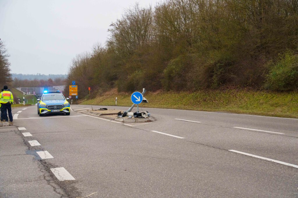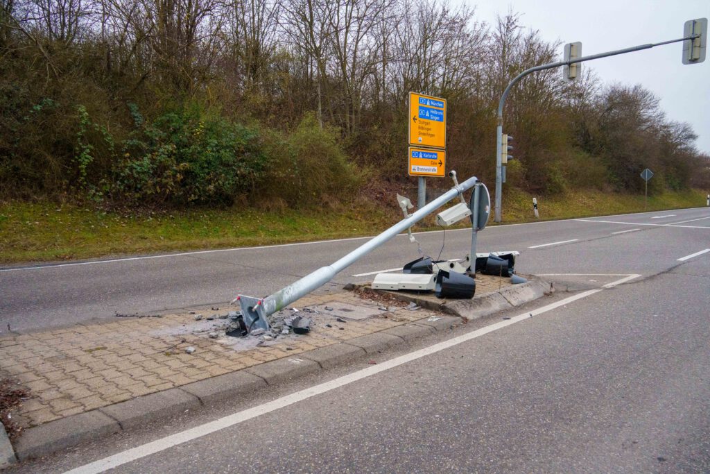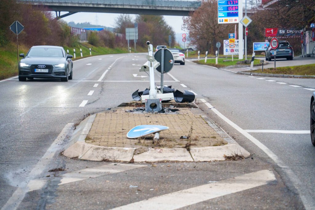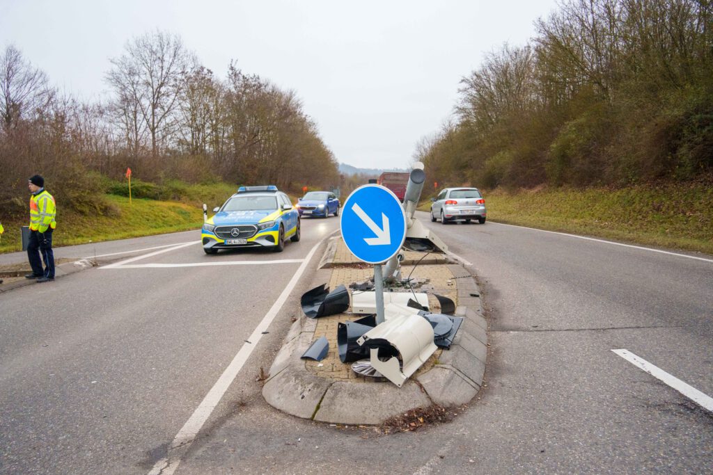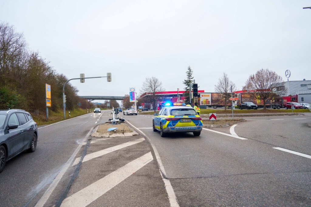 Bei einem Verkehrsunfall in der Südrandstraße in Leonberg wurde am Dienstagmorgen (23.12.2025) kurz nach 09:00 Uhr eine Person leicht verletzt. Eine 69-jährige Ford-Fahrerin war dort in Fahrtrichtung Leonberg-West unterwegs, als sie auf Höhe der Einmündung zur Bruckenbachstraße aus bislang ungeklärter Ursache auf eine Verkehrsinsel fuhr. Dort kollidierte die 69-Jährige zunächst mit einem Verkehrszeichen und prallte schließlich mit ihrem Ford gegen einen Ampelmast, wo das Fahrzeug zum Stehen kam. Die Autofahrerin zog sich bei dem Unfall leichte Verletzungen zu und wurde vom Rettungsdienst in ein Krankenhaus gebracht. Ihr Ford Fiesta wurde stark beschädigt, war nicht mehr fahrbereit und musste abgeschleppt werden. Der Sachschaden am Fahrzeug beläuft sich auf rund 7.000 Euro. Der Schaden an dem Verkehrszeichen und dem Ampelmast beträgt etwa 6.000 Euro. Infolge des Unfalls fiel die Ampelanlage im Bereich der Unfallstelle aus, so dass der Verkehr zunächst durch die Polizei geregelt werden musste, bis eine Wartungsfirma zur Instandsetzung der Anlage verständigt werden konnte.(pol)