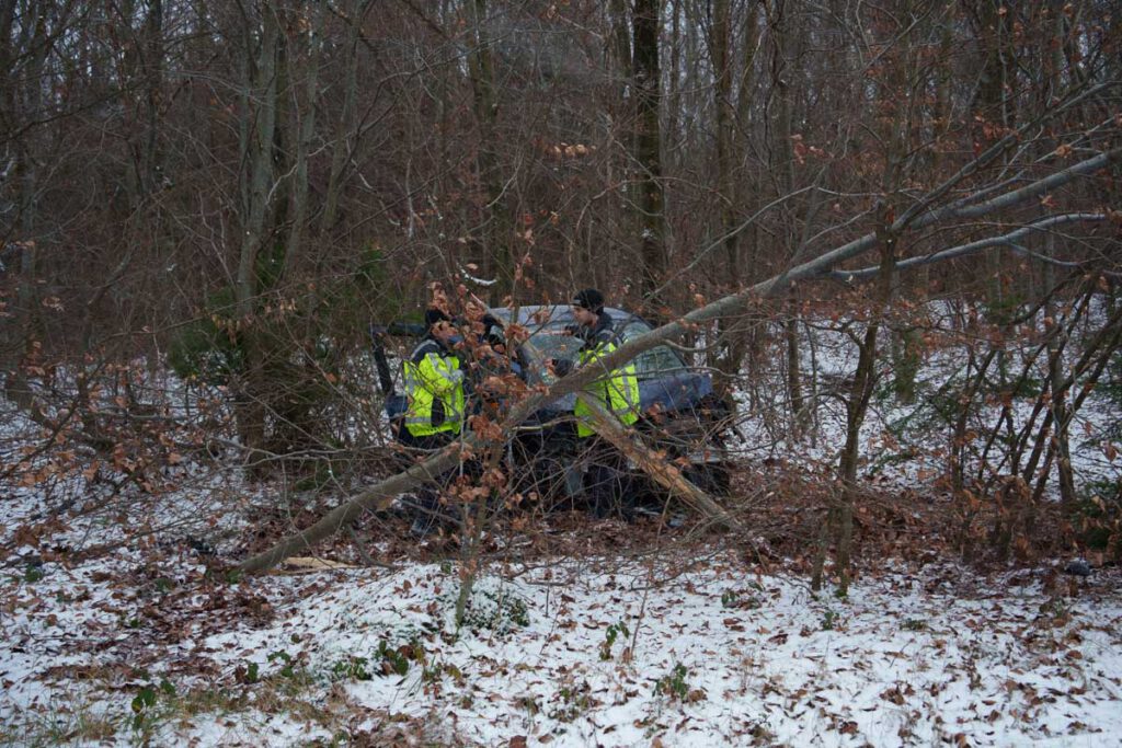 Leonberg-Warmbronn: PKW kommt von der Straße ab und landet im Wald