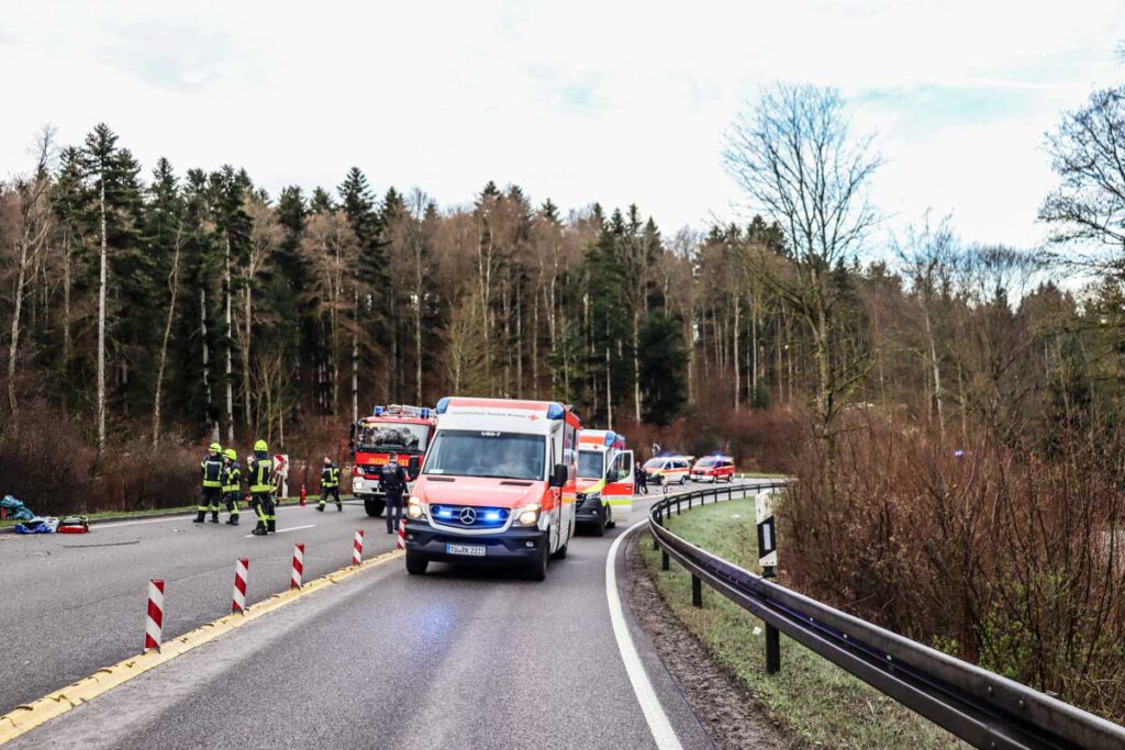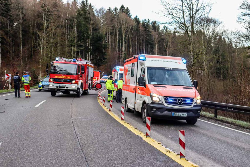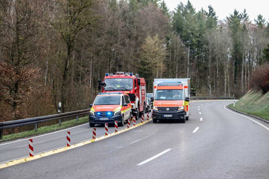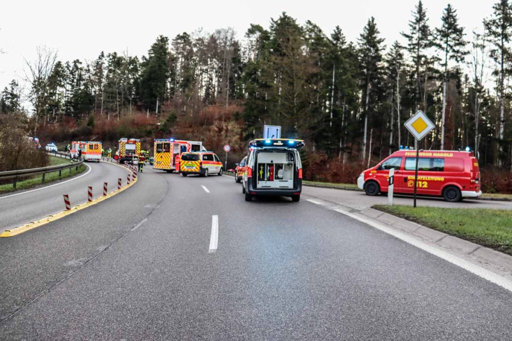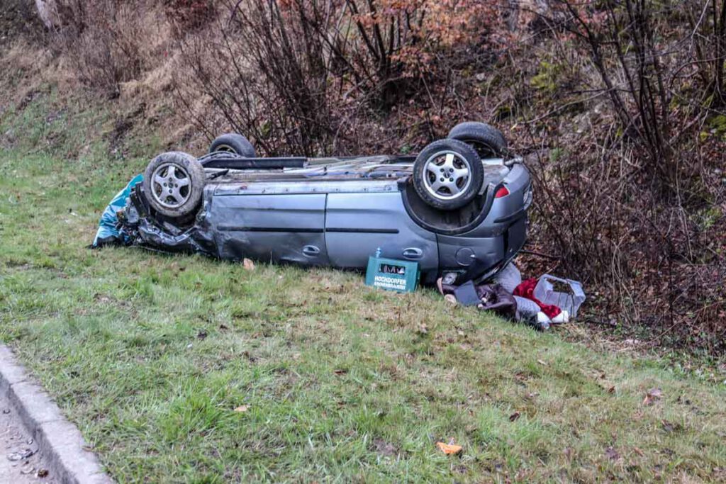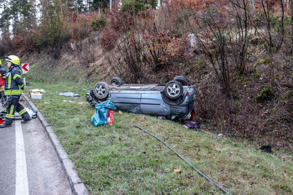 Zu einem schweren Verkehrsunfall auf der B28 kam es am Ostersonntag gegen 07:00 Uhr zwischen Nagold und Jettingen. Ein mit fünf jungen Frauen besetzter Opel Corsa kam mutmaßlich aufgrund überhöhter Geschwindigkeit in einer Kurve von der Fahrbahn ab, überschlug sich mehrfach und landete im angrenzenden Feld auf dem Dach. Die 19 jährige Fahrzeugführerin und ihre vier Mitfahrerinnen im Alter von 18 bis 20 Jahren wurden allesamt schwer und zum Teil lebensgefährlich verletzt in umliegende Krankenhäuser eingeliefert. Die Fahrzeuginsassen standen erkennbar unter Alkoholeinfluss. Ein bei der Fahrzeugführerin durchgeführter Atemalkoholtest ergab einen Wert von über 1,2 Promille. Ihr wurde eine Blutprobe entnommen und der Führerschein einbehalten. Bei dem Einsatz waren fünf Rettungswagen, 2 Notärzte, ein Rettungshubschrauber, vier Feuerwehrfahrzeuge sowie vier Funkstreifenwagen im Einsatz. Für die Dauer der Unfallaufnahme war die B28 zeitweise voll gesperrt. Das Unfallfahrzeug wurde abgeschleppt, der entstandene Sachschaden beläuft sich auf etwa 4000 EUR. (pol)
