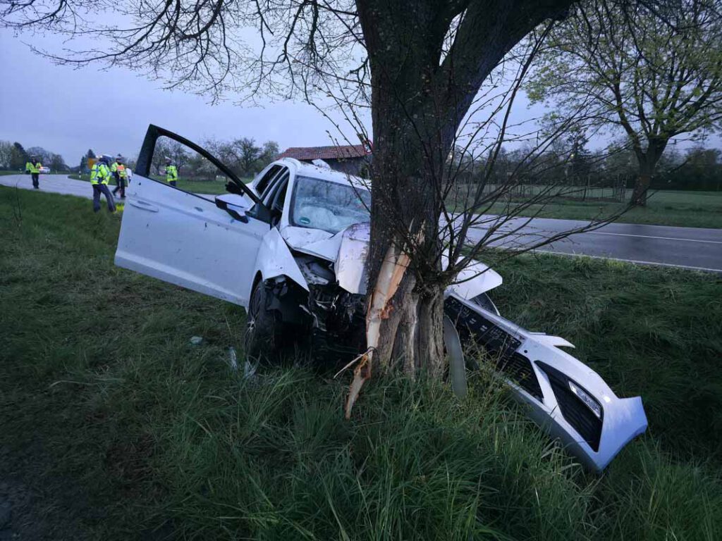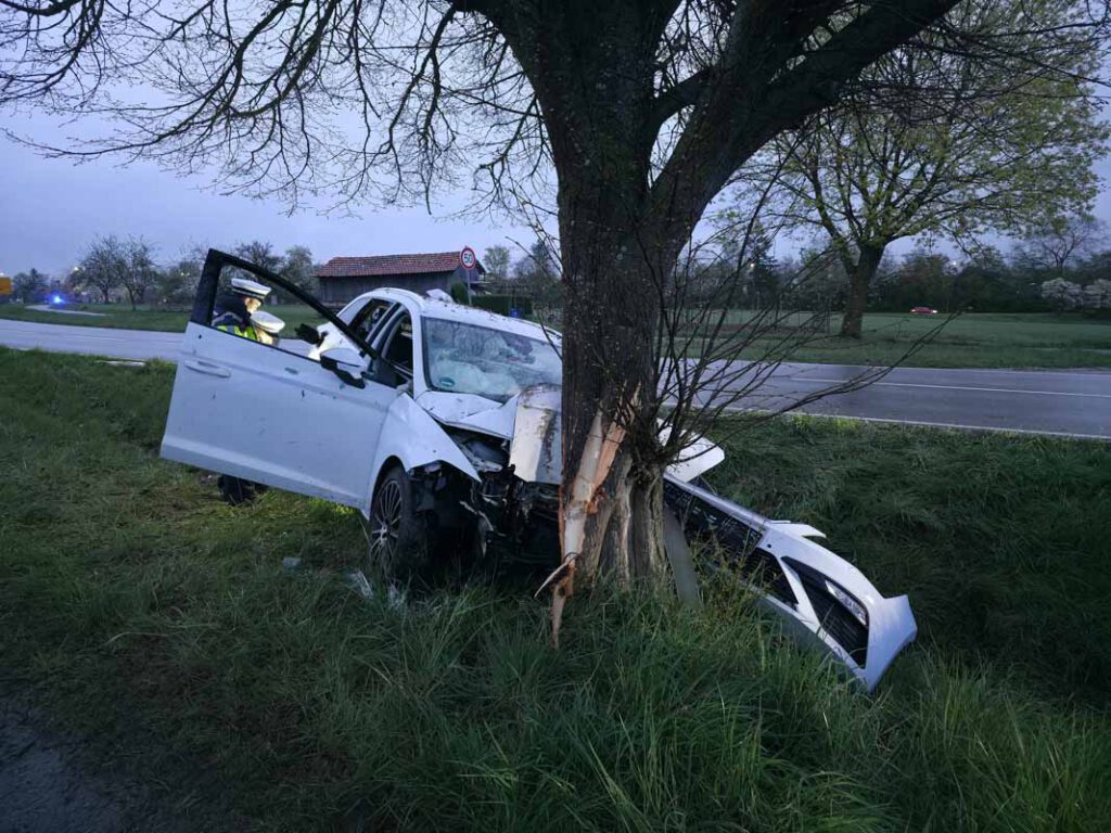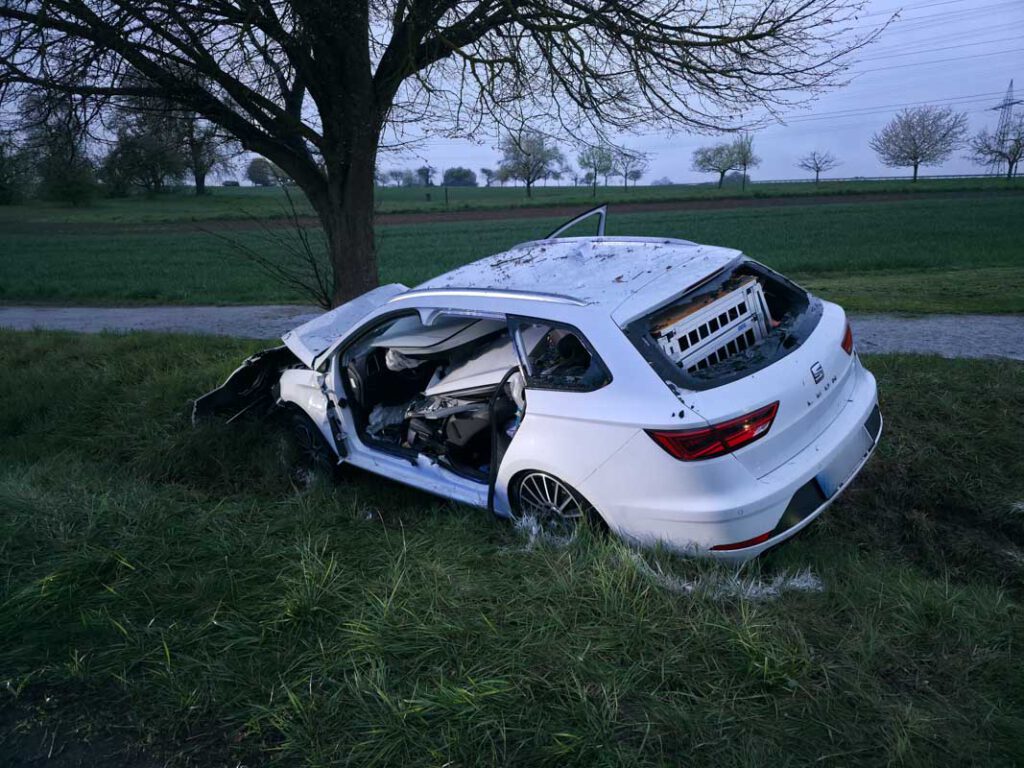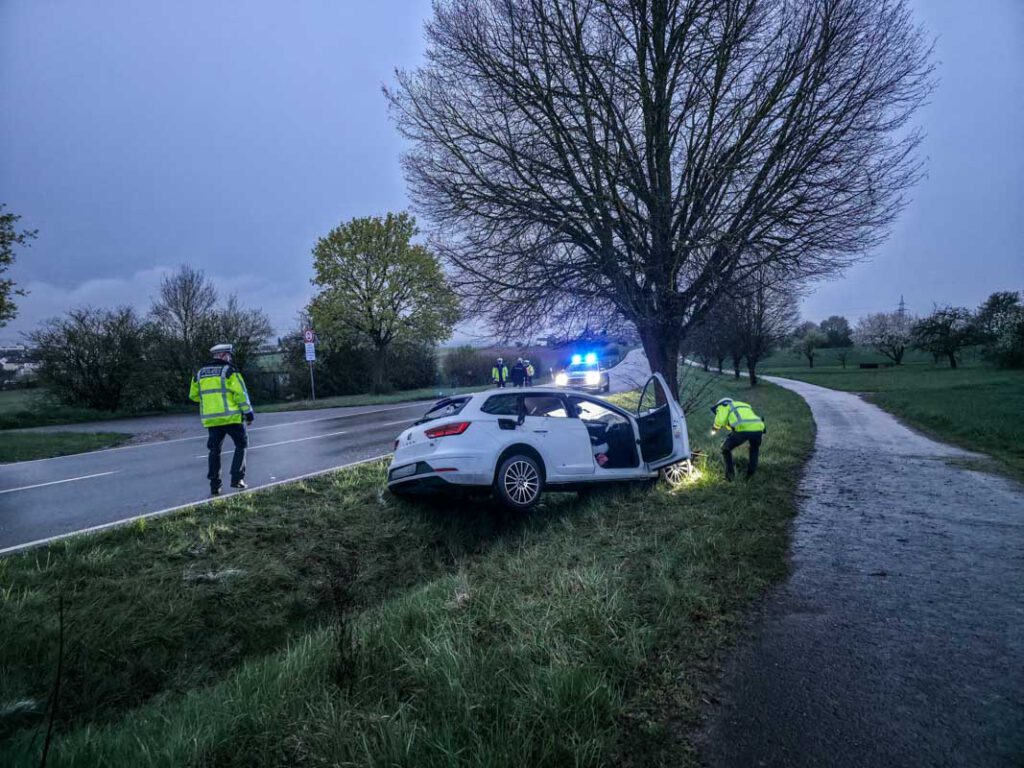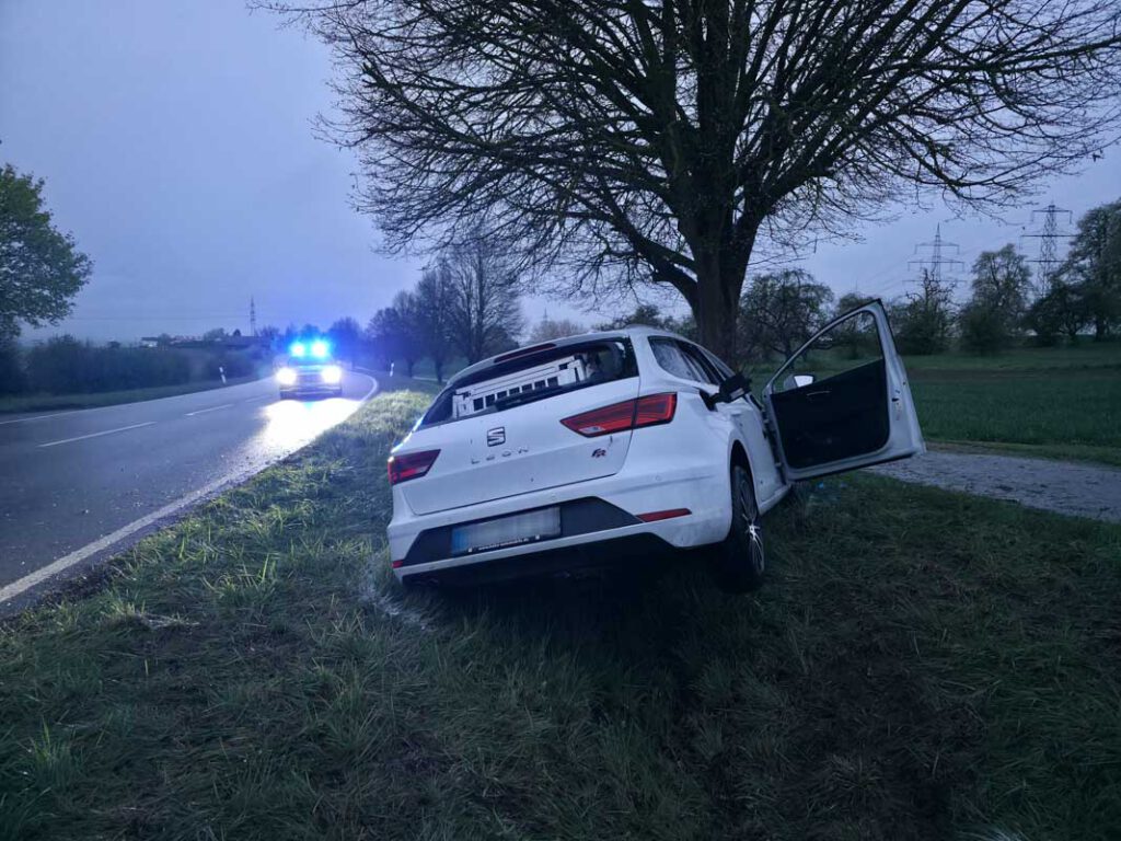Ein 28 Jahre alter Seat-Lenker fuhr am Sonntag (12.04.2026), gegen 19.00 Uhr die Kreisstraße 1004 von Sindelfingen-Maichingen in Richtung Bundesstraße 464 entlang, als er aus noch ungeklärter Ursache in einer Linkskurve nach rechts von der Fahrbahn abkam. Dort kollidierte der 28-Jährige frontal mit einem Baum, wurde in seinem Fahrzeug eingeklemmt und musste von der Feuerwehr befreit werden.