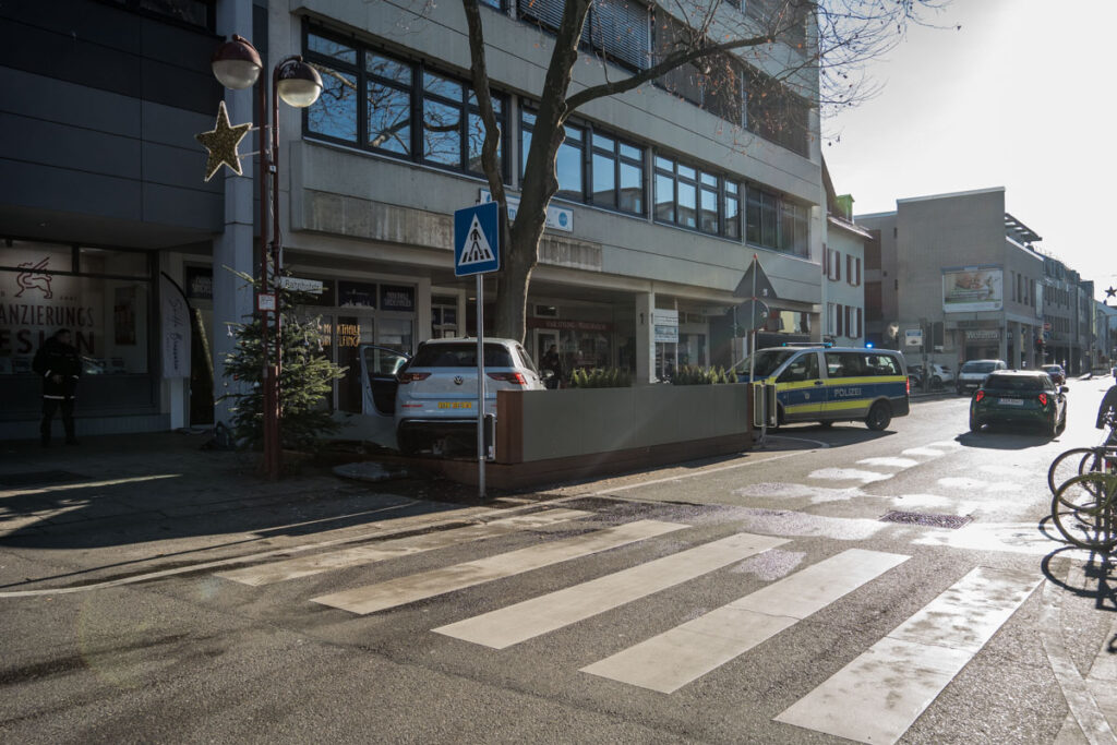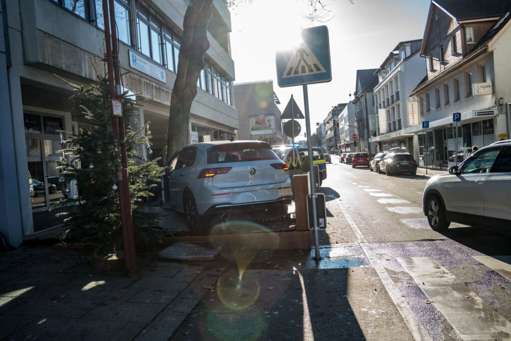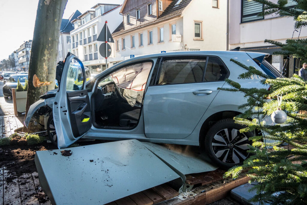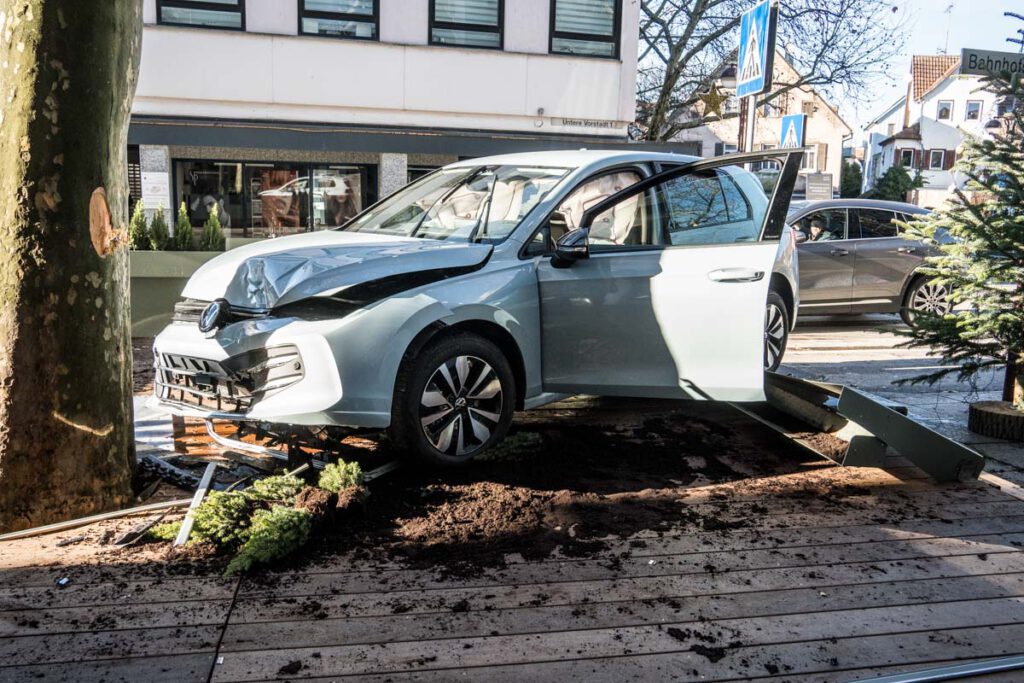 Ein 89-jähriger Autofahrer war am Montag (15.12.2025) gegen 11:15 Uhr in Sindelfingen unterwegs und fuhr mit seinem VW Golf aus der Tiefgarage am Marktplatz in Richtung der Bahnhofstraße. Aus noch ungeklärter Ursache verlor der Rentner die Kontrolle über das Fahrzeug und kollidierte zunächst mit mehreren Absperrpfosten und Verkehrszeichen im Bereich der Tiefgaragenausfahrt. Anschließend überquerte er die Bahnhofstraße und fuhr auf die Terrasse eines Ladengeschäfts, wo die Fahrt schließlich an einem Baum endete. Der 89-Jährige wurde bei dem Unfall leicht verletzt und vorsorglich vom Rettungsdienst in ein Krankenhaus gebracht. Obwohl sich zum Unfallzeitpunkt mehrere Passanten im Bereich der Unfallstelle aufhielten, wurde glücklicherweise niemand verletzt. Es entstand Sachschaden in Höhe von etwa 30.000 Euro. Der VW Golf war nicht mehr fahrbereit und musste abgeschleppt werden.(pol)