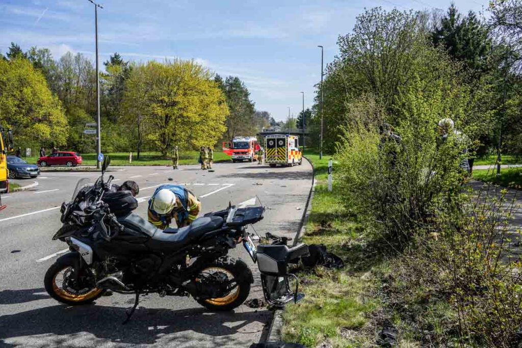 Ein alarmierter Rettungswagen untersuchte den Zweiradfahrer vor Ort. Dank der getragenen Schutzkleidung blieb dieser nahezu unverletzt und musste nicht in ein Krankenhaus gebracht werden.