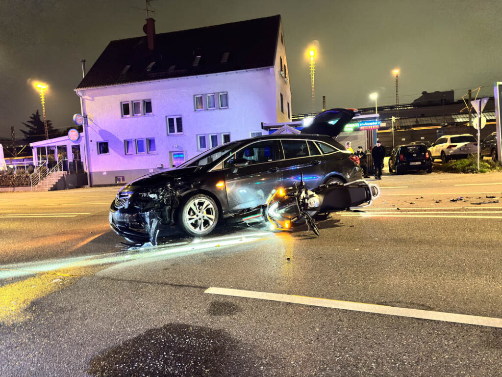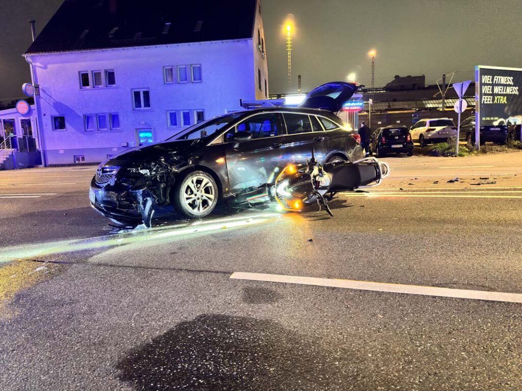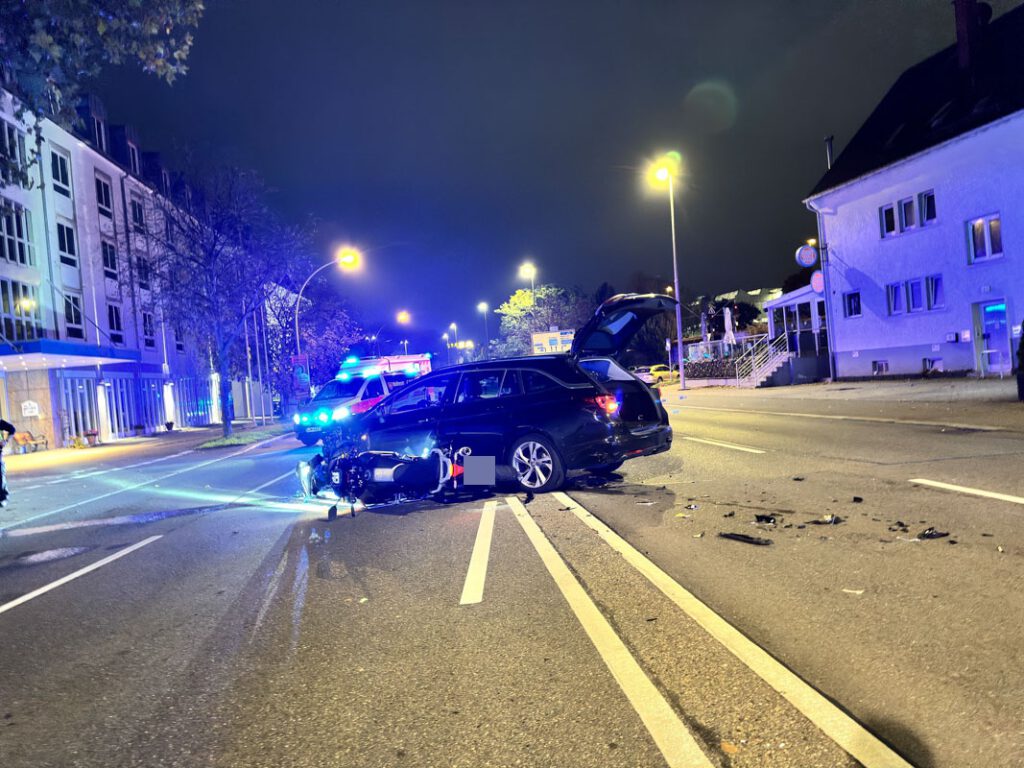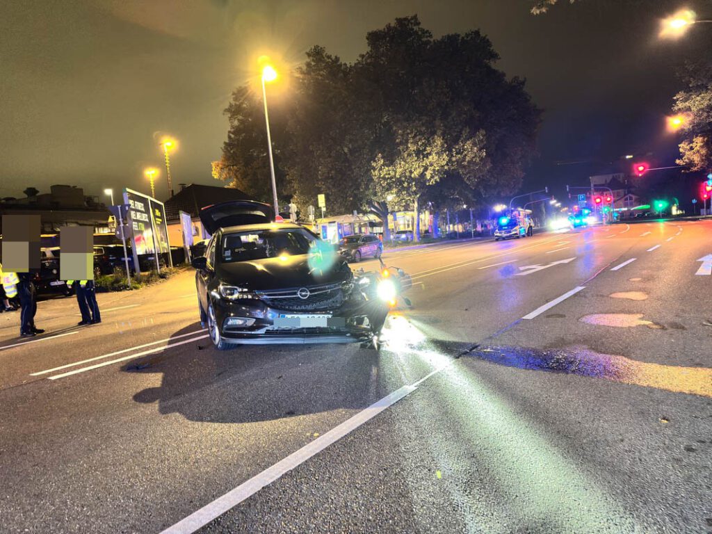 Ein verletzter Motorradfahrer und ein Gesamtsachschaden von etwa 20.000 Euro sind die Bilanz eines Verkehrsunfalls, der sich am Mittwoch (08.10.2025) gegen 22:35 Uhr in Sindelfingen ereignet hat. Der 37-jährige Fahrer einer Honda befuhr die Hanns-Martin-Schleyer-Straße in Richtung der Neckarstraße als der 55-jährige Fahrer eines Opel auf die Fahrbahn einfahren wollte, den Motorradfahrer übersah und es folglich zur Kollision kam. Der Motorradfahrer wurde durch den hinzugerufenen Rettungsdienst versorgt und schwer verletzt in ein Krankenhaus verbracht. Beide Fahrzeuge waren nicht mehr fahrbereit und mussten abgeschleppt werden. Die Hanns-Martin-Schleyer-Straße war im Bereich der Unfallstelle für die Dauer der Unfallaufnahme bis etwa 00:30 Uhr in beiden Richtungen voll gesperrt. (pol)