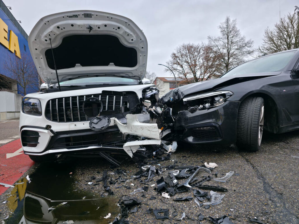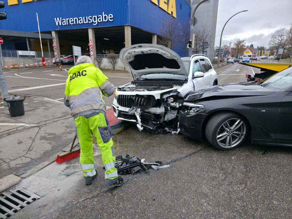 Zu einem Verkehrsunfall infolge einer Vorfahrtsverletzung kam es am Donnerstagnachmittag in Sindelfingen. Nach ersten Erkenntnissen wollte der Fahrer eines BMW von der Böblinger Straße nach links auf den Parkplatz des IKEA Sindelfingen abbiegen. Dabei übersah er einen Mercedes, der aus Richtung der Neckarstraße kommend auf der Böblinger Straße unterwegs war.