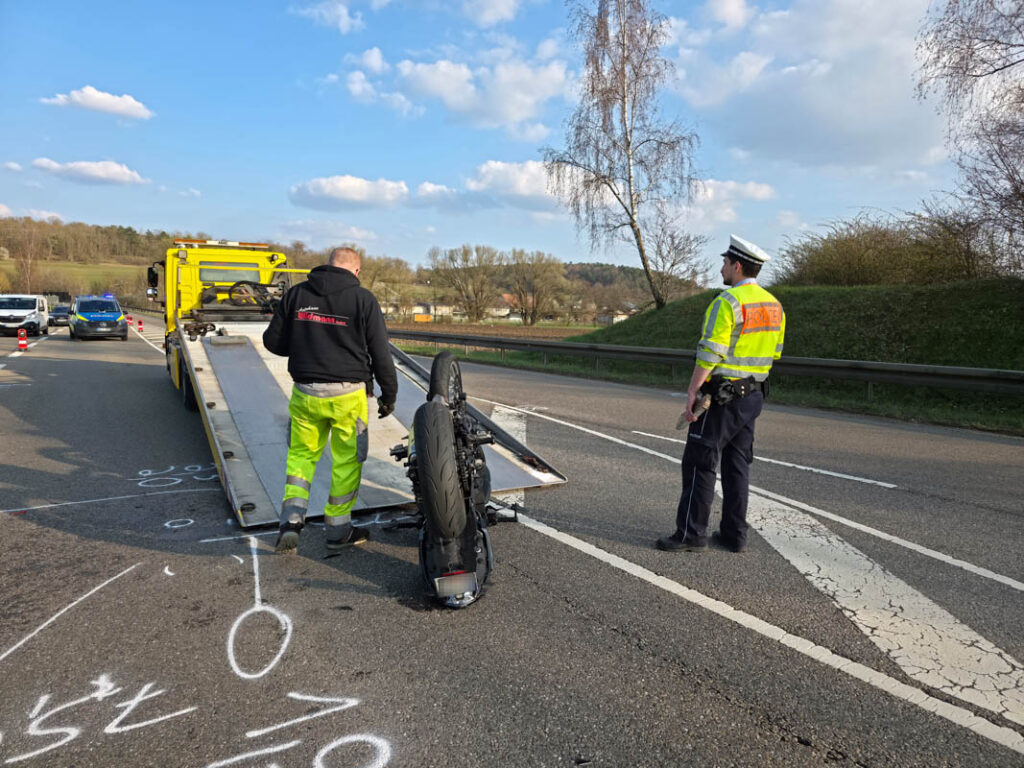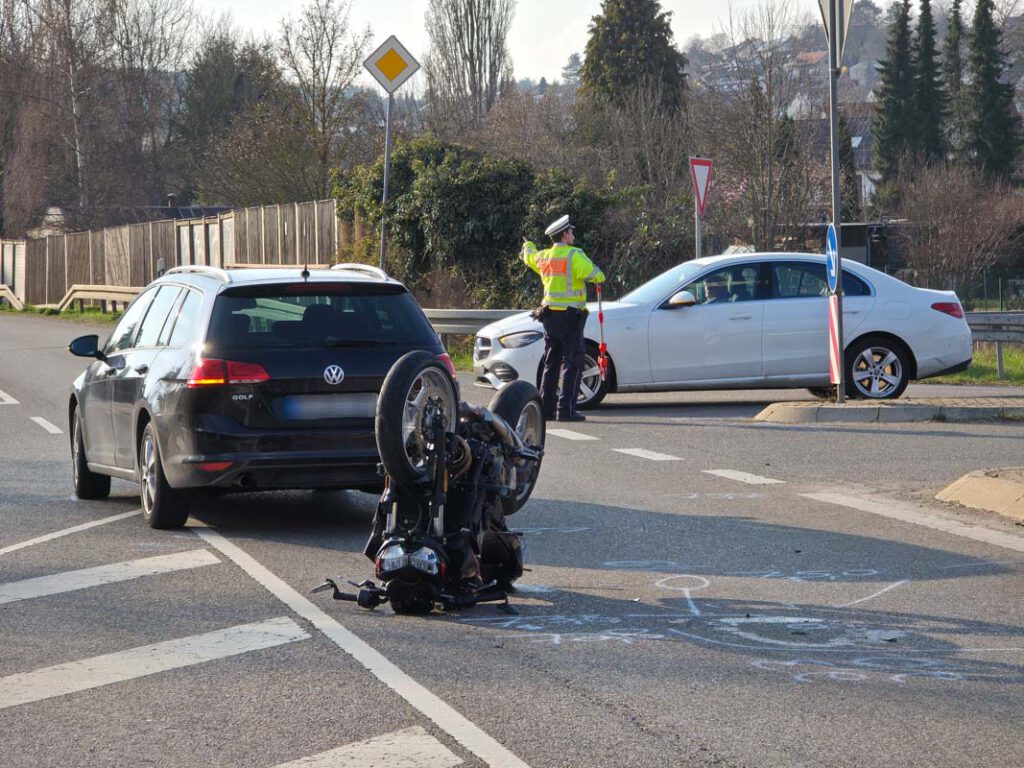 Am Sonntag (22.03.2026) kam es gegen 15:30 Uhr auf der Bundesstraße 295 (B 295) in Weil der Stadt zu einem Verkehrsunfall. Ein 90-jähriger Mercedes-Lenker befuhr die Straße “An der Wolldecke” und wollte nach links auf die B295 auffahren. Zeitgleich befuhr ein 41-jähriger VW-Lenker die B295 aus Richtung Renningen kommend in Fahrtrichtung Simmozheim. Da die Front des Mercedes vermutlich bereits in die Fahrbahn des 41-Jährigen ragte, leitete dieser eine Vollbremsung ein und konnte so einen Zusammenstoß verhindern. Allerdings befand sich hinter dem VW-Lenker eine 20-jährige Motorradfahrerin, die einen Zusammenstoß mit ihrem stark bremsenden Vordermann nicht mehr abwenden konnte. In der Folge stürzte die 20-Jährige über ihren Lenker auf den Asphalt. Aufgrund der Schwere ihrer Verletzungen wurde die junge Frau mit einem Rettungshubschrauber in ein Krankenhaus geflogen. Das Motorrad war nicht mehr fahrbereit und musste abgeschleppt werden. Es entstand ein Gesamtsachschaden in Höhe von etwa 20.000 Euro.(pol)